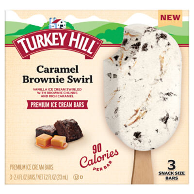 Turkey Hill Caramel Brownie Swirl Premium Ice Cream Bars, 2.4 fl oz, 3